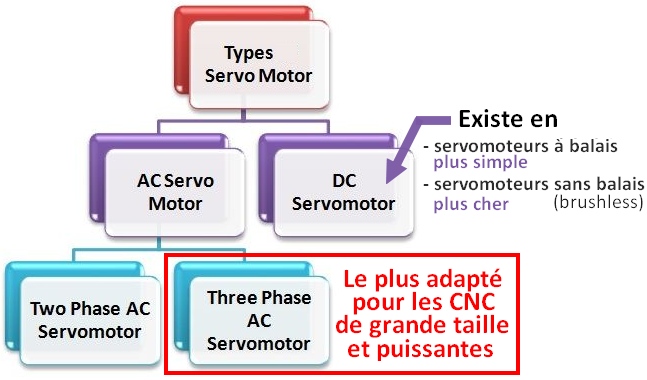 Un servomoteur est dans le domaine de la CNC un moteur commandé de manière à effectuer des centaines de tours pour actionner une transmission destinée à parcourir une course allant de 100 à 3000 mm.